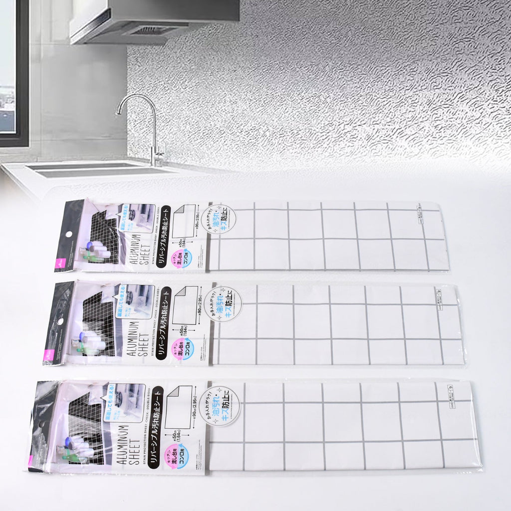 kitchen wall protector , oil splash guard , heat-resistant liner , waterproof liner , stove area protection , shelf liner , cabinet lining , grid pattern sheet , aluminum foil sticker , kitchen aluminum liner , wall sticker protector